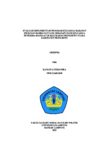 KANASYA , FEBIANDRA (2025) EVALUASI IMPLEMENTASI PROGRAM KELUARGA HARAPAN (PKH) DAN HAMBATAN YANG DIHADAPI OLEH KELUARGA PENERIMA MANFAAT DI KELURAHAN PRINGSEWU UTARA KABUPATEN PRINGSEWU. FAKULTAS ILMU SOSIAL DAN ILMU POLITIK, UNIVERSITAS LAMPUNG.