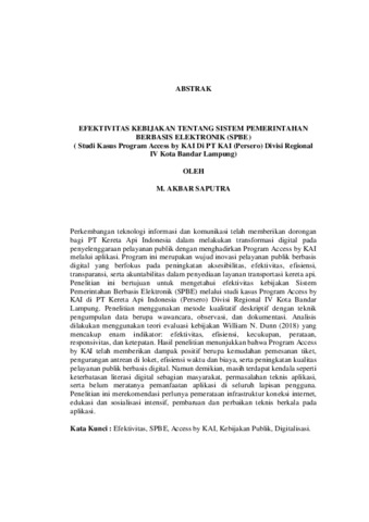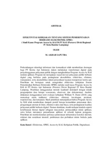 M. Akbar, Saputra (2025) EFEKTIVITAS KEBIJAKAN TENTANG SISTEM PEMERINTAHAN BERBASIS ELEKTRONIK (SPBE) (Studi Kasus Program Access by KAI Di PT KAI (Persero) Divisi Regional IV Kota Bandar Lampung). FAKULTAS ILMU SOSIAL DAN ILMU POLITIK, UNIVERSITAS LAMPUNG.
