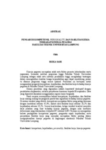 RIZKA, SARI (2025) PENGARUH KOMPETENSI, PERSONALITY, DAN FASILITAS KERJA TERHADAP KINERJA PEGAWAI FAKULTAS TEKNIK UNIVERSITAS LAMPUNG. Masters thesis, UNIVERSITAS LAMPUNG .