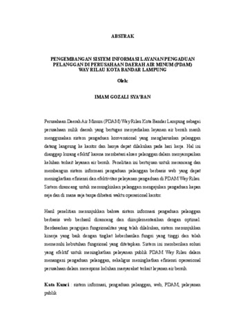 IMAM , GOZALI SYA’BAN (2025) PENGEMBANGAN SISTEM INFORMASI LAYANAN PENGADUAN PELANGGAN DI PERUSAHAAN DAERAH AIR MINUM (PDAM) WAY RILAU KOTA BANDAR LAMPUNG. [Diploma/Tugas Akhir]