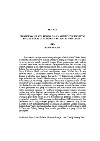 HABIB , AHMADI (2025) PERAN SEKOLAH SENI TUBABA DALAM MEMBENTUK IDENTITAS BUDAYA LOKAL DI KABUPATEN TULANG BAWANG BARAT. FAKULTAS ILMU SOSIAL DAN ILMU POLITIK, UNIVERSITAS LAMPUNG.