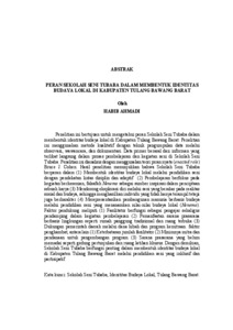 Penelitian ini bertujuan untuk mengetahui peran Sekolah Seni Tubaba dalam membentuk identitas budaya lokal di Kabupaten Tulang Bawang Barat. Penelitian ini menggunakan metode kualitatif dengan teknik pengumpulan data melalui observasi, wawancara, dan dokumentasi. Data primer berasal dari informan yang terlibat langsung dalam proses pembelajaran dan kegiatan seni di Sekolah Seni Tubaba. Penelitian ini dianalisis dengan menggunakan teori peran nyata (enacted role) Bruce J. Cohen. Hasil penelitian menunjukkan bahwa Sekolah Seni Tubaba berperan dalam (1) Membentuk identitas budaya lokal melalui pendidikan seni dengan pendekatan lintas disiplin dan adaptif (2) Pembelajaran berfokus pada kegiatan berkesenian, falsafah Nenemo sebagai sumber inspirasi dalam penciptaan sebuah karya (3) Mendorong eksplorasi diri melalui seni yang berakar pada realitas sosial dan budaya, sehingga menghasilkan individu yang tidak hanya terampil tetapi juga berkarakter (4) Merepresentasikan pembangunan manusia berbasis budaya melalui pendidikan seni yang menanamkan nilai-nilai budaya lokal (Nenemo). Faktor pendukung meliputi (1) Fasilitator berfungsi sebagai pengajar sekaligus pendamping dalam kegiatan pembelajaran (2) Pemanfaatan sarana prasarana berbasis lingkungan seperti rumah panggung tradisional dan ruang terbuka (3) Dukungan pemerintah daerah melalui dana hibah dan program kemitraan. faktor penghambat, antara lain (1) Keterbatasan jumlah fasilitator (2) Minimnya mitra dan pendanaan untuk pengembangan program (3) Sarana prasarana yang belum memadai seperti gedung pertunjukan dan ruang latihan khusus. Dengan demikian, Sekolah Seni Tubaba berfungsi penting dalam membentuk identitas budaya lokal di Kabupaten Tulang Bawang Barat melalui pendidikan seni yang inklusif dan partisipatif. Kata kunci: Sekolah Seni Tubaba, Idenititas Budaya Lokal, Tulang Bawang Barat. This study aims to determine the role of the Tubaba Art School in shaping local cultural identity in West Tulang Bawang Regency. This study uses a qualitative method with data collection techniques through observation, interviews, and documentation. Primary data comes from informants who are directly involved in the learning process and art activities at the Tubaba Art School. This study was analyzed using Bruce J. Cohen's enacted role theory. The results of the study indicate that the Tubaba Art School plays a role in (1) Shaping local cultural identity through art education with a cross-disciplinary and adaptive approach (2) Learning focuses on artistic activities, the Nenemo philosophy as a source of inspiration in creating a work (3) Encouraging self-exploration through art rooted in social and cultural realities, thus producing individuals who are not only skilled but also have character (4) Representing culture-based human development through art education that instills local cultural values (Nenemo). Supporting factors include (1) Facilitators function as teachers and companions in learning activities (2) Utilization of environment-based infrastructure such as traditional stilt houses and open spaces (3) Support from local governments through grants and partnership programs. Inhibiting factors include (1) Limited number of facilitators (2) Lack of partners and funding for program development (3) Inadequate infrastructure, such as performance halls and dedicated practice rooms. Thus, the Tubaba Arts School plays an important role in shaping local cultural identity in West Tulang Bawang Regency through inclusive and participatory arts education. Keywords: Tubaba Arts School, Local Cultural Identity, West Tulang Bawang.
