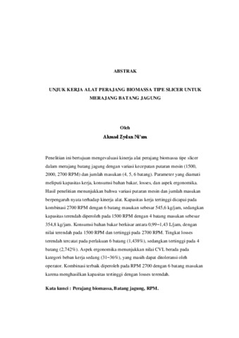 AHMAD , ZYDAN NI’AM (2025) UNJUK KERJA ALAT PERAJANG BIOMASSA TIPE SLICER UNTUK MERAJANG BATANG JAGUNG. FAKULTAS PERTANIAN, UNIVERSITAS LAMPUNG.