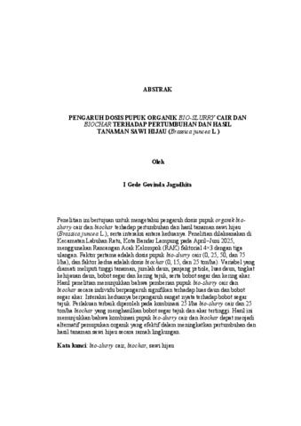 I Gede , Govinda Jagadhita (2025) PENGARUH DOSIS PUPUK ORGANIK BIO-SLURRY CAIR DAN BIOCHAR TERHADAP PERTUMBUHAN DAN HASIL TANAMAN SAWI HIJAU (Brassica juncea L.). FAKULTAS PERTANIAN, UNIVERSITAS LAMPUNG.