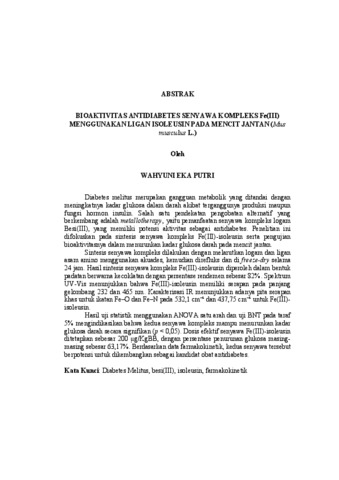 Wahyuni, Eka Putri (2025) BIOAKTIVITAS ANTIDIABETES SENYAWA KOMPLEKS Fe(III) MENGGUNAKAN LIGAN ISOLEUSIN PADA MENCIT JANTAN (Mus musculus L.). FAKULTAS MATEMATIKA DAN ILMU PENGETAHUAN ALAM, UNIVERSITAS LAMPUNG .