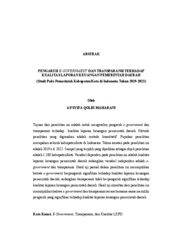 PENGARUH E-GOVERNMENT DAN TRANSPARANSI TERHADAP KUALITAS LAPORAN KEUANGAN PEMERINTAH DAERAH (Studi Pada Pemerintah Kabupaten/Kota di Indonesia Tahun 2019-2022)