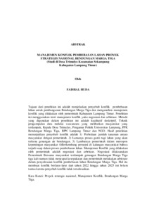 MANAJEMEN KONFLIK PEMBEBASAN LAHAN PROYEK STRATEGIS NASIONAL BENDUNGAN MARGA TIGA (Studi di Desa Trimulyo Kecamatan Sekampung Kabupaten Lampung Timur)
