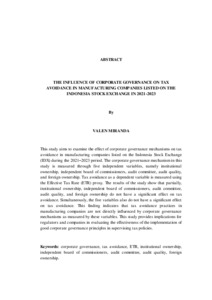 Valen, Miranda (2025) PENGARUH CORPORATE GOVERNANCE TERHADAP TAX AVOIDANCE PADA PERUSAHAAN MANUFAKTUR YANG TERDAFTAR DI BURSA EFEK INDONESIA TAHUN 2021-2023. FAKULTAS EKONOMI DAN BISNIS, UNIVERSITAS LAMPUNG.