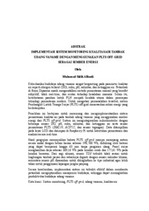 Keberhasilan budidaya udang vaname sangat bergantung pada parameter kualitas air seperti oksigen terlarut (DO), suhu, pH, salinitas, dan ketinggian air. Petambak di Bumi Dipasena masih mengandalkan metode pemantauan manual yang bersifat subjektif, tidak real-time, dan rentan terhadap kesalahan manusia. Selain itu, keterbatasan pasokan listrik PLN menjadi kendala utama dalam penerapan teknologi pemantauan modern. Untuk mengatasi permasalahan tersebut, sistem Pembangkit Listrik Tenaga Surya (PLTS) off-grid menawarkan solusi energi yang berkelanjutan. Penelitian ini bertujuan untuk merancang dan mengimplementasikan sistem pemantauan kualitas air pada tambak udang vaname yang menggunakan sumber energi dari PLTS off-grid. Sistem ini mengintegrasikan mikrokontroler dengan beberapa sensor DO, pH, suhu, salinitas, dan ketinggian air serta sensor pemantauan PLTS (INA219, ACS712, dan sensor tegangan). Data ditampilkan pada layar LCD dan disimpan di Raspberry Pi untuk kebutuhan pemantauan dan analisis secara real-time. Hasil pengujian menunjukkan bahwa PLTS off-grid mampu menopang sistem secara andal dengan beban harian sebesar 198,768 Wh, didukung oleh baterai yang dapat beroperasi hingga 63 jam tanpa pengisian ulang. Panel surya menghasilkan daya sebesar 369,16 Wh pada kondisi cerah dan 177,61 Wh pada kondisi berawan. Dari segi akurasi, sensor TDS terbukti tidak sesuai untuk lingkungan tambak payau dan sebaiknya diganti dengan sensor salinitas khusus, sementara sensor pH disarankan untuk ditingkatkan ke tipe industrial agar lebih tahan untuk penggunaan lapangan jangka panjang. Secara keseluruhan, implementasi sistem ini terbukti efektif dalam membantu petambak mengoptimalkan manajemen budidaya, sehingga dapat meningkatkan produktivitas budidaya udang vaname. Kata kunci: Sistem monitoring, PLTS off-grid, udang vaname, kualitas air.