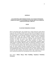 M. GIFARY , DHARMAYANDARU (2025) ANALISIS PENGARUH DISKON HARGA DAN PAKET BUNDLING TERHADAP KEPUTUSAN PEMBELIAN KONSUMEN PADA PRODUK KAHF DI BANDAR LAMPUNG. FAKULTAS EKONOMI DAN BISNIS, UNIVERSITAS LAMPUNG.