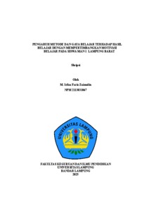 M. Irfan Fariz , Zainudin (2025) PENGARUH METODE DAN GAYA BELAJAR TERHADAP HASIL BELAJAR DENGAN MEMPERTIMBANGKAN MOTIVASI BELAJAR PADA SISWA MAN 1 LAMPUNG BARAT. FAKULTAS KEGURUAN DAN ILMU PENDIDIKAN, UNIVERSITAS LAMPUNG.