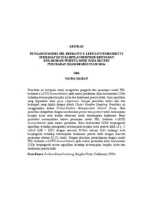 Penelitian ini bertujuan untuk mengetahui pengaruh dari penerapan model PBL berbantu e-LKPD Liveworksheets pada materi perubahan iklim berorientasi SDGs terhadap keterampilan berpikir kritis dan kolaborasi peserta didik. Jenis penelitian yang digunakan ialah quasi eksperimen. Sampel penelitian terdiri dari dua kelompok yang dipilih dengan teknik Cluster Random Sampling. Penelitian ini menggunakan desain Pretest-Posttest Nonequivalent Control Group. Data penelitian didapatkan dengan memberikan pretest dan posttest untuk kemampuan berpikir kritis serta lembar observasi untuk keterampilan kolaborasi. Hasil penelitian menunjukkan bahwa penerapan model PBL berbantu e-LKPD Liveworksheets pada materi perubahan iklim berorientasi SDGs berpengaruh signifikan terhadap peningkatan keterampilan berpikir kritis peserta didik (Sig. (2 tailed) 0,00 < 0,05) dengan rata-rata N-Gain sebesar 0,64 (sedang) serta berpengaruh terhadap keterampilan kolaborasi peserta didik dengan rata-rata persentase sebesar 81,2% (baik). Dengan demikian pembelajaran dengan model PBL berbantu e-LKPD Liveworksheets pada materi perubahan iklim berorientasi SDGs berpengaruh secara signifikan terhadap keterampilan berpikir kritis dan kolaborasi peserta didik. Kata Kunci: Problem Based Learning, Berpikir Kritis, Kolaborasi, SDGs This study aims to determine the effect of the application of the PBL model assisted by e-LKPD Liveworksheets on SDGs-oriented climate change material on students' critical thinking and collaboration skills. The type of research used is quasi- experimental. The research sample consisted of two groups selected using the Cluster Random Sampling technique. This study used the Pretest-Posttest Nonequivalent Control Group design. The research data were obtained by providing a pretest and posttest for critical thinking skills and an observation sheet for collaboration skills. The results showed that the application of the PBL model assisted by e-LKPD Liveworksheets on SDGs-oriented climate change material had a significant effect on improving students' critical thinking skills (Sig. (2 tailed) 0.00 <0.05) with an average N-Gain of 0.64 (moderate) and influenced students' collaboration skills with an average percentage of 81.2% (good). Thus, learning with the PBL model assisted by e-LKPD Liveworksheets on SDGs-oriented climate change material has a significant effect on students' critical thinking and collaboration skills. Keywords: Problem Based Learning, Critical Thinking, Collaboration, SDGs