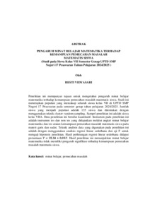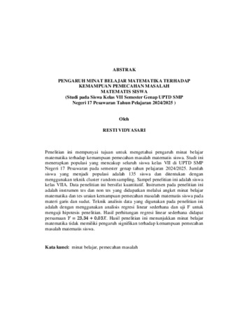 Resti , Vidyasari (2025) PENGARUH MINAT BELAJAR MATEMATIKA TERHADAP KEMAMPUAN PEMECAHAN MASALAH MATEMATIS SISWA (Studi pada Siswa Kelas VII Semester Genap UPTD SMP Negeri 17 Pesawaran Tahun Pelajaran 2024/2025. FAKULTAS KEGURUAN DAN ILMU PENDIDIKAN, UNIVERSITAS LAMPUNG.