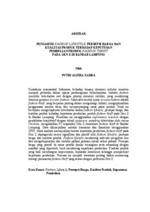 Putri , Alfira Zahra (2025) PENGARUH FASHION LIFESTYLE, PERSEPSI HARGA DAN KUALITAS PRODUK TERHADAP KEPUTUSAN PEMBELIAN PRODUK FASHION THRIFT PADA GEN Z DI BANDAR LAMPUNG. FAKULTAS ILMU SOSIAL DAN ILMU POLITIK, UNIVERSITAS LAMPUNG.