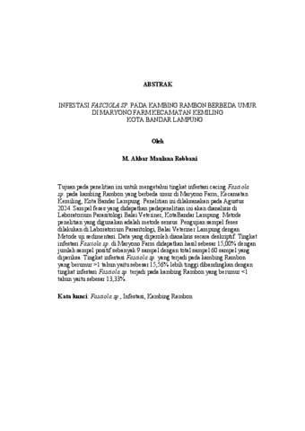 M. Akbar , Maulana Robbani (2025) INFESTASI FASCIOLA Sp. PADA KAMBING RAMBON BERBEDA UMUR DI MARYONO FARM KECAMATAN KEMILING KOTA BANDAR LAMPUNG. PERTANIAN, UNIVERSITAS LAMPUNG.