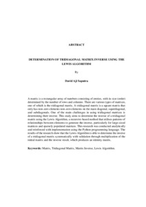 David, Aji Saputra (2025) DETERMINATION OF TRIDIAGONAL MATRIX INVERSE USING THE LEWIS ALGORITHM. FAKULTAS MATEMATIKA DAN ILMU PENGETAHUAN ALAM, UNIVERSITAS LAMPUNG.