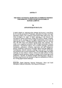 Aisyah , Rizqiani Maulana (2025) THE EFFECT OF DIGITAL MARKETING TO IMPROVE BUSINESS PERFORMANCE: FOODS AND BEVERAGES MSEs IN BANDAR LAMPUNG. FAKULTAS EKONOMI DAN BISNIS, UNIVERSITAS LAMPUNG.