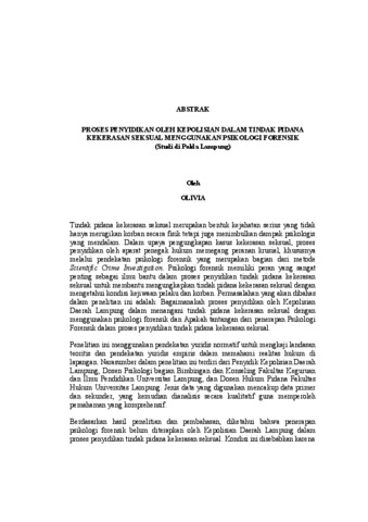 OLIVIA, (2025) PROSES PENYIDIKAN OLEH KEPOLISIAN DALAM TINDAK PIDANA KEKERASAN SEKSUAL MENGGUNAKAN PSIKOLOGI FORENSIK. FAKULTAS HUKUM, UNIVERSITAS LAMPUNG.
