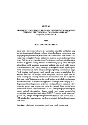 HIMAS AGUNG , DEKARUNI (2025) PENGARUH PEMBERIAN PUPUK UREA DAN PUPUK KANDANG SAPI TERHADAP PERTUMBUHAN TANAMAN CABAI RAWIT (Capsicum frustescens L.). FAKULTAS MATEMATIKA DAN ILMU PENGETAHUAN ALAM, UNIVERSITAS LAMPUNG.