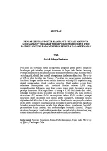 Penelitian ini bertujuan untuk mengetahui pengaruh pesan poster kampanye kandungan gula terhadap persepsi konsumen di Super Indo Bandar Lampung. Persepsi konsumen dalam penelitian ini dianalisis berdasarkan tiga dimensi utama yaitu kognitif, afektif, dan konatif, sebagaimana dijelaskan dalam teori Hierarchy of Effects oleh Lavidge dan Steiner. Penelitian ini menggunakan pendekatan kuantitatif dengan metode survei melalui kuesioner terhadap 100 responden yang dipilih menggunakan teknik random sampling. Hasil analisis regresi linier sederhana menunjukkan nilai koefisien korelasi sebesar 0,653 yang mengindikasikan hubungan yang kuat antara pesan poster kampanye dengan persepsi konsumen. Nilai signifikansi (t-hitung = 8,530) lebih besar dari t-tabel, sehingga hipotesis dalam penelitian ini diterima. Sementara itu, nilai koefisien determinasi (R2) sebesar 0,426 menunjukkan bahwa 42,6% variabel persepsi konsumen dapat dijelaskan oleh pesan poster kampanye, sedangkan sisanya dijelaskan oleh faktor lain di luar penelitian ini. Penelitian ini menyimpulkan bahwa pesan poster kampanye kandungan gula memiliki pengaruh positif dan signifikan terhadap persepsi konsumen melalui tiga tahapan utama: pemahaman (kognitif), pembentukan sikap (afektif), dan kecenderungan bertindak (konatif). Dengan demikian, kampanye visual melalui poster dapat menjadi strategi komunikasi yang efektif dalam membentuk persepsi masyarakat terhadap isu kesehatan. Kata kunci: Persepsi Konsumen, Pesan Poster kampanye, Super Indo, Hierarchy of Effects, Kandungan Gula. This study aims to determine the influence of sugar content campaign posters on consumer perception at Super Indo Bandar Lampung. Consumer perception in this research is analyzed through three main dimensions: cognitive, affective, and conative, as explained in the Hierarchy of Effects theory by Lavidge and Steiner. This study uses a quantitative approach with a survey method through questionnaires distributed to 100 respondents selected using random sampling technique. The results of the simple linear regression analysis show a correlation coefficient of 0.653, indicating a strong relationship between the campaign poster message and consumer perception. The significance value (t-value = 8.530) exceeds the t-table value, which means the hypothesis is accepted. Meanwhile, the coefficient of determination (R2) is 0.426, indicating that 42.6% of consumer perception is influenced by the campaign poster message, while the rest is influenced by other factors outside this study. This study concludes that the sugar content campaign poster has a positive and significant effect on consumer perception through three main stages: understanding (cognitive), attitude formation (affective), and behavioral intention (conative). Thus, visual campaigns using posters can be an effective communication strategy in shaping public perception regarding health issues. Keywords: Consumer Perception, Campaign Poster Sessage, poster, Super Indo Hierarchy of Effects, Sugar Content.