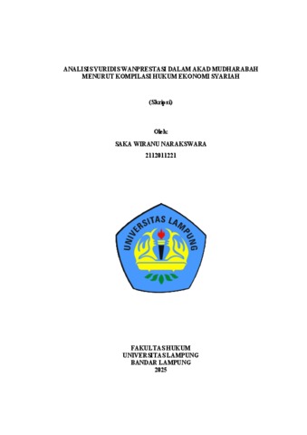 SAKA , WIRANU NARAKSWARA (2025) ANALISIS YURIDIS WANPRESTASI DALAM AKAD MUDHARABAH MENURUT KOMPILASI HUKUM EKONOMI SYARIAH. FAKULTAS HUKUM, UNIVERSITAS LAMPUNG .