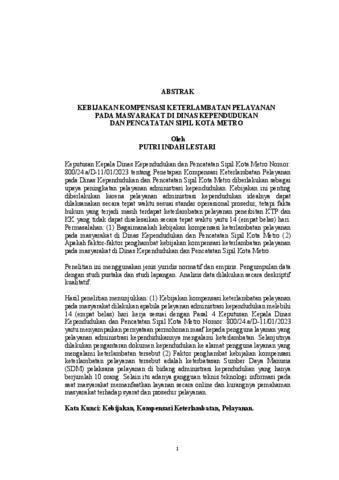 Putri , Indah Lestari (2025) KEBIJAKAN KOMPENSASI KETERLAMBATAN PELAYANAN PADA MASYARAKAT DI DINAS KEPENDUDUKAN DAN PENCATATAN SIPIL KOTA METRO. FAKULTAS HUKUM, UNIVERSITAS LAMPUNG.