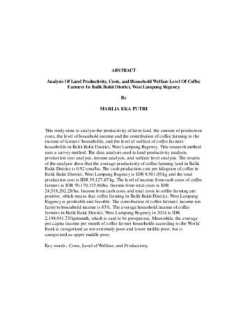 MARLIA , EKA PUTRI (2025) Analysis Of Land Productivity, Costs, and Household Welfare Level Of Coffee Farmers In Balik Bukit District, West Lampung Regency. FAKULTAS PERTANIAN, UNIVERSITAS LAMPUNG.