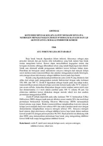 AYU , FORTUNE LISA HUTABARAT (2025) KONVERSI MINYAK KELAPA SAWIT MENJADI SENYAWA NITROGEN MENGGUNAKAN ZEOLIT-P SEBAGAI KATALIS DAN UJI AKTIVITASNYA SEBAGAI INHIBITOR KOROSI. FAKULTAS MATEMATIKA DAN ILMU PENGETAHUAN ALAM, UNIVERSITAS LAMPUNG.
