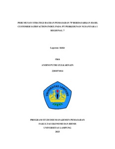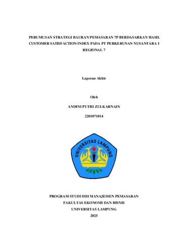 ANDINI , PUTRI ZULKARNAIN (2025) PERUMUSAN STRATEGI BAURAN PEMASARAN 7P BERDASARKAN HASIL CUSTOMER SATISFACTION INDEX PADA PT PERKEBUNAN NUSANTARA I REGIONAL 7. [Diploma/Tugas Akhir]