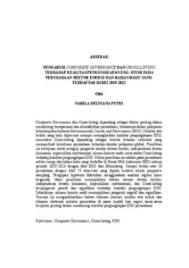 Nabila, Delviana Putri (2025) PENGARUH CORPORATE GOVERNANCE DAN CROSS-LISTING TERHADAP KUALITAS PENGUNGKAPAN ESG: STUDI PADA PERUSAHAAN SEKTOR ENERGI DAN BAHAN BAKU YANG TERDAFTAR DI BEI 2019-2023. FAKULTAS EKONOMI DAN BISNIS , UNIVERSITAS LAMPUNG .