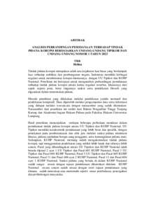 Tindak pidana korupsi merupakan salah satu kejahatan luar biasa yang berdampak luas terhadap stabilitas dan pembangunan negara. Indonesia memiliki berbagai regulasi untuk memberantas korupsi diantaranya dengan UU Tipikor dan KUHP Nasional. Penelitian ini bertujuan untuk menganalisis perbandingan pemidanaan terhadap tindak pidana korupsi antara kedua regulasi tersebut, khususnya dari aspek seperti jenis, berat ringannya sanksi serta pendekatan filosofi yang digunakan dalam menentukan pidana. Metode penelitian yang dilakukan melalui pendekatan yuridis normatif dan pendekatan kompratif. Data diperoleh melalui pengumpulan data serta informasi yang didapat melalui wawancara dengan narasumber yang sudah ditentukan. Narasumber dari penelitian ini terdiri dari Hakim Pengadilan Tinggi Tanjung Karang dan Akademisi bagian Hukum Pidana pada Fakultas Hukum Universitas Lampung. Hasil penelitian menunjukkan terdapat beberapa perbedaan mendasar dalam pemidanaan tindak pidana korupsi antara UU Tipikor dan KUHP Nasional. UU Tipikor memiliki karakteristik pemidanaan yang lebih berat dan spesifik, dengan penekanan pada pemberantasan dan efek jera melalui sanksi pidana minimum khusus, pidana tambahan berupa uang pengganti, serta kemungkinan pidana mati. Sedangkan, KUHP Nasional, memang sudah mengakomodasi tindak pidana korupsi, tapi menggunakan pendekatan yang sedikit lebih lunak dan sifatnya lebih umum. Pasal yang dibandingakan antara UU Tipokor dan KUHP Nasional ialah berada dipasal 2 ayat 1 UU Tipikor dan Pasal 603 KUHP Nasional, Pasal 3 UU Tipikor dan Pasal 604 KUHP Nasional, Pasal 5 UU Tipikor dan Pasal 605 KUHP Nasional, Pasal 11 dan Pasal 606 ayat 2 KUHP Nasional, Pasal 13 dan Pasal 606 ayat 1 KUHP Nasional. Sanksi pidana yang berada di dalam KUHP Nasional sudah sangat sesuai dengan tujuan pemidanaan dikarenkan didalam KUHP Nasional secara umum sudah sesuai dengan teori tujuan pemidanaan yang dimana sudah mencakup atau memenuhi seperti unsur pembalasan, pencegahan dan perlindungan masyaraka. Helina Saran dari penelitian ini adalah diharapkan agar aparat penegak hukum tetap mengacu pada UU Tipikor sebagai lex specialis, yang dimana agar efek jera tetap maksimal. dan Sanksi pidana terhadap pelaku tindak pidana korupsi dalam KUHP Nasional perlu dipastikan bahwasanya pemidanaannya tidak lebih ringan dibandingankan dengan UU Tipikor itu sendiri, jika terdapat kecenderungan dalam pengurangan ancaman pidana maka dikhawatirkan tidak memenuhi aspek retributif, efek jera dan pencegahan. Kata Kunci : Pemidanaan, Korupsi, KUHP Nasional, UU Tipikor Corruption is one of the extraordinary crimes that has a broad impact on the stability and development of a state. Indonesia has established various regulations to combat corruption, including the Corruption Eradication Act (UU Tipikor) and the National Criminal Code (KUHP Nasional). This study aims to analyze the comparison of sentencing for corruption offenses between these two legal frameworks, particularly in terms of the types of sanctions, the severity of punishment, and the philosophical approaches underlying the determination of criminal penalties. The research employed a normative juridical approach combined with a comparative approach. The data used consisted of primary data obtained through interviews and secondary data collected through literature studies. The research was conducted at the High Court of Tanjung Karang, with interviews involving judges as well as legal scholars and academics. Data collection was carried out through library research and field studies, and the collected data were then analyzed qualitatively. The findings indicate that there are several fundamental differences in the sentencing of corruption crimes between UU Tipikor and the National Criminal Code. UU Tipikor is characterized by harsher and more specific punishments, emphasizing eradication and deterrence through provisions such as mandatory minimum penalties, additional sanctions in the form of restitution, and the possibility of capital punishment. In contrast, the National Criminal Code, while accommodating corruption offenses, adopts a relatively more lenient and general approach. The articles compared include Article 2 paragraph (1) of UU Tipikor and Article 603 of the National Criminal Code, Article 3 of UU Tipikor and Article 604 of the National Criminal Code, Article 5 of UU Tipikor and Article 605 of the National Criminal Code, Article 11 of UU Tipikor and Article 606 paragraph (2) of the National Criminal Code, and Article 13 of UU Tipikor and Article 606 paragraph (1) of the National Criminal Code. The criminal sanctions within the National Criminal Code are considered to be consistent with the general objectives of punishment, as they encompass elements of retribution, deterrence, and protection of society. Helina The study suggests that law enforcement authorities should continue to apply UU Tipikor as a lex specialis, in order to maximize the deterrent effect. Moreover, the sanctions for corruption offenses under the National Criminal Code must not be lighter than those stipulated under UU Tipikor. Any tendency to reduce the severity of criminal sanctions risks undermining the principles of retribution, deterrence, and prevention. Keywords: Sentencing, Corruption, National Criminal Code, Corruption Eradication Act (UU Tipikor)