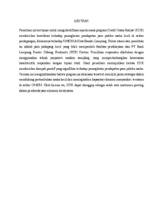 ABSTRAK Penelitian ini bertujuan untuk mengidentifikasi sejauh mana program Kredit Usaha Rakyat (KUR) memberikan kontribusi terhadap peningkatan pendapatan para pelaku usaha kecil di sektor perdagangan, khususnya terhadap UMKM di Kota Bandar Lampung. Fokus utama dari penelitian ini adalah para pedagang kecil yang telah memperoleh fasilitas pembiayaan dari PT Bank Lampung Kantor Cabang Pembantu (KCP) Kartini. Pemilihan responden dilakukan dengan menggunakan teknik purposive random sampling, yang mempertimbangkan kesesuaian karakteristik responden dengan tujuan studi. Hasil penelitian menunjukkan bahwa KUR memberikan dampak positif yang signifikan terhadap peningkatan pendapatan para pelaku usaha. Temuan ini mengindikasikan bahwa program pembiayaan tersebut memiliki peran strategis dalam mendukung pertumbuhan usaha kecil dan meningkatkan kapasitas ekonomi masyarakat, terutama di sektor UMKM. Oleh karena itu, KUR dapat dianggap sebagai salah satu instrumen penting dalam pemberdayaan ekonomi kerakyatan.