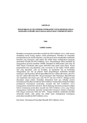 Luthfia , Azzahra (2025) PENGEMBANGAN MULTIMEDIA INTERAKTIF UNTUK MENINGKATKAN KEMAMPUAN PEMECAHAN MASALAH DAN SELF CONFIDENCE SISWA. Masters thesis, UNIVERSITAS LAMPUNG.