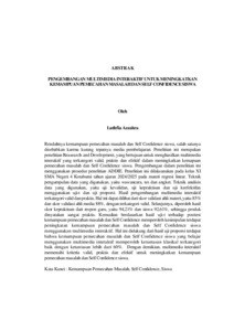 ABSTRAK Rendahnya kemampuan pemecahan masalah dan Self Confidence siswa, salah satunya disebabkan karena kurang tepatnya media pembelajaran. Penelitian ini merupakan penelitian Reasearch and Development, yang bertujuan untuk menghasilkan multimedia interaktif yang terkategori valid, praktis dan efektif dalam meningkatkan kemapuan pemecahan masalah dan Self Confidence siswa. Pengembangan dalam penelitian ini menggunakan prosedur penelitian ADDIE. Penelitian ini dilaksanakan pada kelas XI SMA Negeri 4 Kotabumi tahun ajaran 2024/2025 pada materi regresi linear. Teknik pengumpulan data yang digunakan, yaitu wawancara, tes dan angket. Teknik analisis data yang digunakan, yaitu uji kevalidan, uji kepraktisan dan uji keefektifan menggunakan uji-t dan uji proporsi. Hasil pengembangan multimedia interaktif terkategori valid dan praktis. Hal ini dapat dilihat dari skor validasi ahli materi, yaitu 85% dan skor validasi ahli media 88%, dengan terkategori valid. Selanjutnya, diperoleh hasil skor kepraktisan dari respon guru, yaitu 94,21% dan siswa 92,61%, sehingga produk dinyatakan sangat praktis. Kemudian berdasarkan hasil uji-t terhadap posttest kemampuan pemecahan masalah dan Self Confidence memperoleh kesimpulan terdapat peningkatan kemampuan pemecahan masalah dan Self Confidence siswa menggunakan multimedia interaktif. Hal ini didukung dari hasil uji proporsi terdapat bahwa kemampuan pemecahan masalah dan Self Confidence siswa yang belajar menggunakan multimedia interaktif memperoleh ketuntasan klasikal terkategori baik dengan ketuntasan lebih dari 60%. Dengan demikian, multimedia interaktif memenuhi kriteria valid, praktis dan efektif untuk meningkatkan kemampuan pemecahan masalah dan Self Confidence siswa. Kata Kunci : Kemampuan Pemecahan Masalah, Self Confidence, Siswa