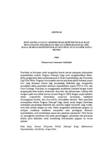 Prameswari, Amaratus Solekhah (2025) INOVASI PELAYANAN ADMINISTRASI KEPENDUDUKAN BAGI PENYANDANG DISABILITAS MELALUI PROGRAM DUKCAPIL SIAGA DI DINAS KEPENDUDUKAN DAN PENCATATAN SIPIL KOTA METRO. FAKULTAS ILMU SOSIAL DAN ILMU POLITIK, UNIVERSITAS LAMPUNG.