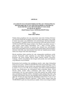Daud , Aulia Nabhan (2025) ANALISIS PUTUSAN HAKIM TERHADAP PELAKU TINDAK PIDANA MENDISTRIBUSIKAN DAN MENTRANSMISIKAN INFORMASI ELEKTRONIK YANG MENCEMARKAN NAMA BAIK DI APLIKASI MICHAT (Studi Putusan Nomor 142/Pid.Sus/2022/PN Kbu). FAKULTAS HUKUM, UNIVERSITAS LAMPUNG.