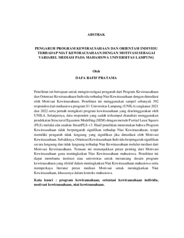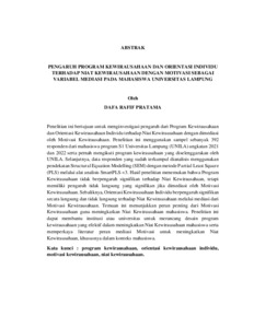DAFA , RAFIF PRATAMA (2025) PENGARUH PROGRAM KEWIRAUSAHAAN DAN ORIENTASI INDIVIDU TERHADAP NIAT KEWIRAUSAHAAN DENGAN MOTIVASI SEBAGAI VARIABEL MEDIASI PADA MAHASISWA UNIVERSITAS LAMPUNG. FAKULTAS EKONOMI DAN BISNIS, UNIVERSITAS LAMPUNG.