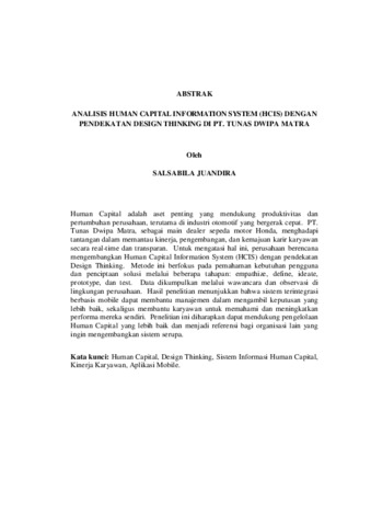Salsabila Juandira, - (2025) ANALISIS HUMAN CAPITAL INFORMATION SYSTEM (HCIS) DENGAN PENDEKATAN DESIGN THINKING DI PT. TUNAS DWIPA MATRA. FAKULTAS MATEMATIKA DAN ILMU PENGETAHUAN ALAM, UNIVERSTAS LAMPUNG.
