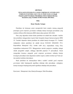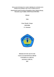 Bram, Timothy Tarigan (2025) PENGARUH PENERAPAN GOOD CORPORATE GOVERNANCE TERHADAP KINERJA KEUANGAN PERUSAHAAN (Studi Empiris pada Perusahaan Manufaktur Sektor Industri Barang Konsumsi yang Terdaftar di BEI Periode 2018-2022). EKONOMI DAN BISNIS, UNIVERSITAS LAMPUNG.