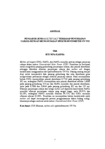 SITI NINA, KARNIA (2025) PENGARUH JENIS MOLTEN SALT TERHADAP PENYERAPAN CAHAYA DENGAN MENGGUNAKAN SPEKTROFOTOMETER UV-VIS. FAKULTAS MATEMATIKA DAN ILMU PENGETAHUAN ALAM, UNIVERSITAS LAMPUNG.