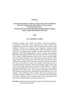 Ayu, Naharotu Zahro (2025) PENGARUH MODEL PEMBELAJARAN CREATIVE PROBLEM SOLVING TERHADAP KEMAMPUAN PENALARAN MATEMATIS SISWA (Studi pada Siswa Kelas VIII SMP Muhammadiyah 3 Bandar Lampung Semester Ganjil Tahun Pelajaran 2024/2025). FAKULTAS MATEMATIKA DAN ILMU PENGETAHUAN ALAM, UNIVERSITAS LAMPUNG.