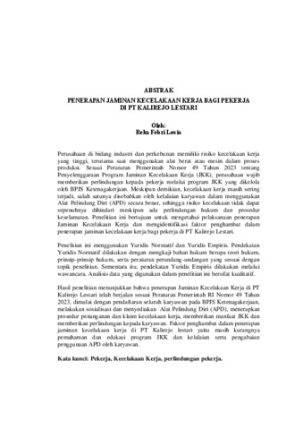 Reka , Febri Lovia (2025) PENERAPAN JAMINAN KECELAKAAN KERJA BAGI PEKERJA DI PT KALIREJO LESTARI. FAKULTAS HUKUM, UNIVERSITAS LAMPUNG.