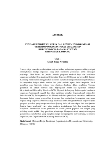 Aisyah , Rizqa Ayundra (2025) PENGARUH MOTIVASI KERJA DAN KOMITMEN ORGANISASI TERHADAP ORGANIZATIONAL CITIZENSHIP BEHAVIOR (OCB) PADA KARYAWAN RRI BANDAR LAMPUNG. FAKULTAS EKONOMI DAN BISNIS, UNIVERSITAS LAMPUNG.