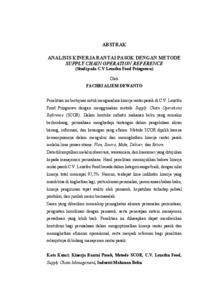 Penelitian ini bertujuan untuk menganalisis kinerja rantai pasok di C.V. Lezatku Food Pringsewu dengan menggunakan metode Supply Chain Operations Reference (SCOR). Dalam konteks industri makanan beku yang semakin berkembang, perusahaan menghadapi tantangan dalam pengelolaan aliran barang, informasi, dan keuangan yang efisien. Metode SCOR dipilih karena kemampuannya dalam mengukur dan meningkatkan kinerja rantai pasok melalui lima proses utama: Plan, Source, Make, Deliver, dan Return. Data dikumpulkan melalui observasi, wawancara, dan kuesioner yang ditujukan kepada manajemen perusahaan. Hasil penelitian menunjukkan bahwa kinerja rantai pasok C.V. Lezatku Food berada dalam kategori sangat baik, dengan nilai kinerja total mencapai 95,5%. Namun, terdapat lima indikator kinerja yang masih bisa di tingkatkan lagi, yaitu akurasi peramalan, perencanaan bahan baku, kinerja pengiriman tepat waktu oleh pemasok, kepatuhan terhadap jadwal produksi, dan jumlah mesin bermasalah. Saran yang diberikan mencakup peningkatan akurasi peramalan permintaan, penguatan koordinasi dengan pemasok, serta penerapan sistem manajemen persediaan yang lebih baik. Penelitian ini diharapkan dapat memberikan kontribusi bagi perusahaan dalam mengoptimalkan kinerja rantai pasok dan meningkatkan efisiensi operasional, serta menjadi referensi bagi penelitian selanjutnya di bidang manajemen rantai pasok. Kata Kunci: Kinerja Rantai Pasok, Metode SCOR, C.V. Lezatku Food, Supply Chain Management, Industri Makanan Beku. This study aims to analyze the supply chain performance of C.V. Lezatku Food Pringsewu using the Supply Chain Operations Reference (SCOR) method. In the context of the rapidly growing frozen food industry, the company faces challenges in efficiently managing the flow of goods, information, and finances. The SCOR method was chosen for its ability to measure and enhance supply chain performance through five key processes: Plan, Source, Make, Deliver, and Return. Data were collected through observations, interviews, and questionnaires directed at the company's management. The results indicate that the supply chain performance of C.V. Lezatku Food is categorized as excellent, with a total performance score of 95,5%. However, five performance indicators still require improvement, namely forecast accuracy, raw material planning, timely delivery performance by suppliers, adherence to production schedules, and the number of machine breakdowns. Recommendations include enhancing demand forecasting accuracy, strengthening coordination with suppliers, and implementing better inventory management systems. This research is expected to contribute to the company’s efforts in optimizing supply chain performance and improving operational efficiency, as well as serve as a reference for future studies in the field of supply chain management. Keywords: Supply Chain Performance, SCOR Method, C.V. Lezatku Food, Supply Chain Management, Frozen Food Industry.