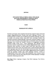 Penelitian ini bertujuan untuk mengetahui seberapa besar pengaruh terpaan media sosial Instagram @gajahlahkebersihan terhadap sikap peduli lingkungan followers. Latar belakang penelitian ini didasari oleh meningkatnya permasalahan lingkungan, khususnya isu sampah, serta perlunya edukasi yang efektif untuk membangun kesadaran dan kepedulian masyarakat terhadap lingkungan. Media sosial, khususnya Instagram, menjadi salah satu sarana komunikasi yang strategis dalam menyampaikan pesan-pesan edukasi lingkungan secara kreatif dan interaktif. Penelitian ini menggunakan pendekatan kuantitatif dengan metode survei. Teknik pengumpulan data dilakukan melalui penyebaran kuesioner kepada followers akun Instagram @gajahlahkebersihan. Variabel independen dalam penelitian ini adalah terpaan media sosial yang diukur melalui indikator frekuensi, durasi, atensi, dan penyajian konten. Variabel dependen adalah sikap peduli lingkungan yang terdiri dari dimensi kognitif, afektif, dan konatif. Hasil analisis menunjukkan bahwa terpaan media sosial Instagram @gajahlahkebersihan berpengaruh positif dan signifikan terhadap sikap peduli lingkungan followers. Temuan ini mengindikasikan bahwa konten edukasi yang disampaikan secara konsisten melalui media sosial dapat membentuk sikap yang lebih peduli terhadap lingkungan di kalangan masyarakat, khususnya generasi muda. Kata Kunci: Edukasi Lingkungan, Instagram, Sikap Peduli Lingkungan, Teori Kultivasi, Terpaan Media This study aims to examine the extent to which exposure to the Instagram account @gajahlahkebersihan influences followers' environmental awareness. The research is motivated by the escalating environmental issues, particularly waste management, and the necessity for effective educational strategies to foster public environmental consciousness and concern. Social media platforms, especially Instagram, serve as strategic communication channels for delivering environmental education messages in creative and interactive ways. Employing a quantitative approach, this study utilizes a survey method, collecting data through questionnaires distributed to followers of the @gajahlahkebersihan Instagram account. The independent variable, social media exposure, is measured through indicators such as frequency, duration, attention, and content presentation. The dependent variable, environmental concern, encompasses cognitive, affective, and conative dimensions. The analysis reveals that exposure to the @gajahlahkebersihan Instagram account has a positive and significant effect on followers' environmental concern. These findings suggest that consistently delivered educational content via social media can cultivate greater environmental awareness and concern among the public, particularly within the younger generation. Keyword: Environmental Education, Instagram, Environmental Concern, Cultivation Theory, Media Exposure