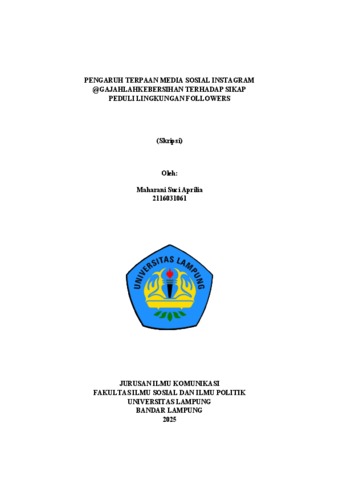 Maharani Suci Aprilia, - (2025) PENGARUH TERPAAN MEDIA SOSIAL INSTAGRAM @GAJAHLAHKEBERSIHAN TERHADAP SIKAP PEDULI LINGKUNGAN FOLLOWERS. FAKULTAS ILMU SOSIAL DAN ILMU POLITIK , UNIVERSITAS LAMPUNG.