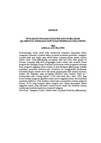 APRILIA , AYU PRATIWI (2025) PENGARUH UNGGAHAN KULINER AKUN INSRAGRAM @LAMPUUNG TERHADAP KEPUTUSAN PEMBELIAN FOLLOWERS. FAKULTAS ILMU SOSIAL DAN ILMU POLITIK, UNIVERSITAS LAMPUNG.