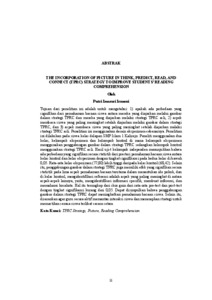 Tujuan dari penelitian ini adalah untuk mengetahui: 1) apakah ada perbedaan yang signifikan dari pemahaman bacaan siswa antara mereka yang diajarkan melalui gambar dalam strategi TPRC dan mereka yang diajarkan melalui strategi TPRC asli, 2) aspek membaca siswa yang paling meningkat setelah diajarkan melalui gambar dalam strategi TPRC, dan 3) aspek membaca siswa yang paling meningkat setelah diajarkan melalui strategi TPRC asli. Penelitian ini menggunakan desain eksperimen-sebenarnya. Penelitian ini dilakukan pada siswa kelas delapan SMP Islam 1 Kalirejo. Peneliti menggunakan dua kelas, kelompok eksperimen dan kelompok kontrol di mana kelompok eksperimen menggunakan penggabungan gambar dalam strategi TPRC sedangkan kelompok kontrol menggunakan strategi TPRC asli. Hasil uji-t kelompok independen menunjukkan bahwa ada perbedaan yang signifikan secara statistik dari prestasi pemahaman bacaan siswa antara kelas kontrol dan kelas eksperimen dengan tingkat signifikansi pada kedua kelas di bawah 0,05. Rata-rata kelas eksperimen (77,80) lebih tinggi daripada kelas kontrol (68,42). Selain itu, penggabungan gambar dalam strategi TPRC juga memiliki efek yang signifikan secara statistik pada lima aspek pemahaman bacaan terutama dalam menentukan ide pokok, dan di kelas kontrol, mengidentifikasi referensi adalah aspek yang paling meningkat di antara aspek-aspek lainnya, yaitu, mengidentifikasi informasi spesifik, membuat inferensi, dan memahami kosakata. Hal itu terungkap dari skor gain dari rata-rata pre-test dan post-test dengan tingkat signifikansi kurang dari 0,05. Dapat disimpulkan bahwa penggabungan gambar dalam strategi TPRC dapat meningkatkan pemahaman bacaan siswa. Selain itu, disarankan agar guru secara aktif memantau interaksi siswa dan menerapkan strategi untuk memastikan semua siswa terlibat secara setara. Kata Kunci: TPRC Strategy, Picture, Reading Comprehension The objectives of this research are to find out: 1) whether there is a significant difference of the students' reading comprehension between those who are taught through picture in TPRC strategy and those who are taught through the original TPRC strategy, 2) the aspect of students’ reading which enhances the most after being taught through picture in TPRC strategy, and 3) the aspect of students’ reading which enhances the most after being taught through original TPRC strategy. This research used true-experimental design. The research was conducted at the eighth-grade students of SMP Islam 1 Kalirejo. The researcher used two classes, experimental and control group in which experimental group used the incorporation of picture in TPRC strategy while the control group used the original TPRC strategy. The results of independent group t-test showed that there was a statistically significant difference of students’ reading comprehension achievement between the control and the experimental classes with the significant level on both classes is below 0.05. The mean of experimental class (77.80) is higher than the control class (68.42). In addition, the incorporation of picture in TPRC strategy also had a statistically significant effect on five aspects of reading comprehension especially on determining main idea, and in the control class, identifying reference is the most increasing aspect among the other aspects, that is, identifying specific information, making inference, and understanding vocabulary. It is revealed from the gain score from the mean of pre-test and post-test with the significant levels of less than 0.05. It can be concluded that the incorporation of picture in TPRC strategy can improve the students’ reading comprehension. In addition, it is suggested that teachers should actively monitor student’s interactions and implement strategies to ensure all students are equally engaged. Keywords: TPRC Strategy, Picture, Reading Comprehension