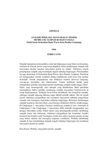 Febri , Yanti (2025) ANALISIS PERILAKU MASYARAKAT PESISIR MEMBUANG SAMPAH RUMAH TANGGA (Studi Kasus Kelurahan Bumi Waras Kota Bandar Lampung). FAKULTAS ILMU SOSIAL DAN ILMU POLITIK, UNIVERSITAS LAMPUNG .