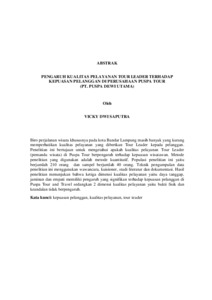 Vicky , Dwi Saputra (2025) PENGARUH KUALITAS PELAYANAN TOUR LEADER TERHADAP KEPUASAN PELANGGAN DI PERUSAHAAN PUSPA TOUR (PT. PUSPA DEWI UTAMA). FAKULTAS KEGURUAN DAN ILMU PENDIDIKAN, UNIVERSITAS LAMPUNG.